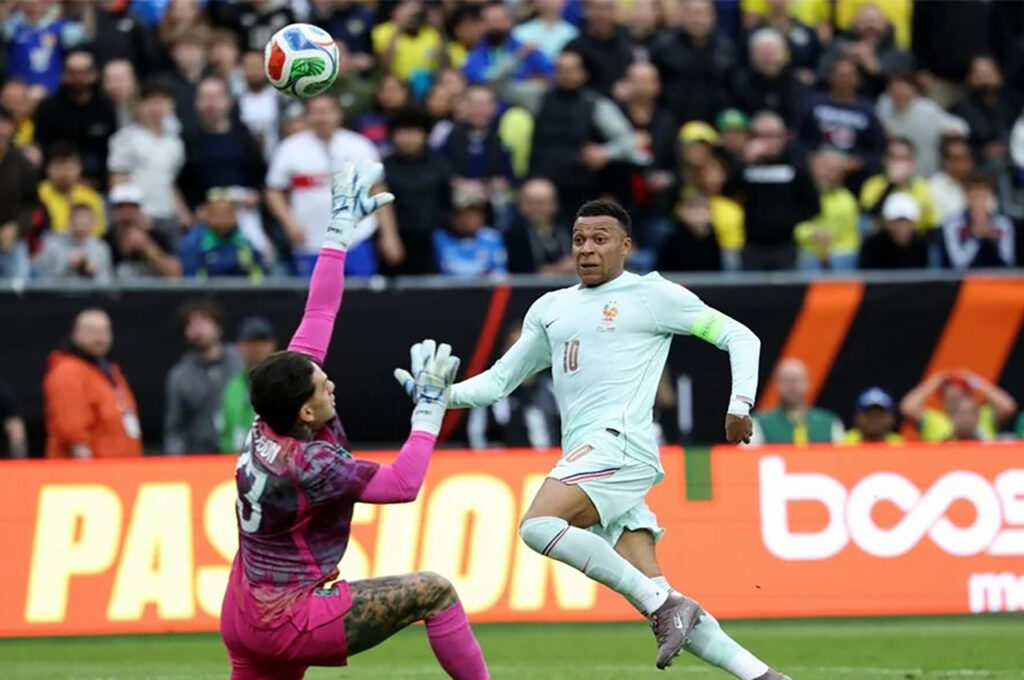 Aos 31 minutos, porém, após erro na saída de bola, Ousmane Dembélé encontrou Mbappé livre. O atacante finalizou com categoria, por cobertura, abrindo o placar para os franceses.