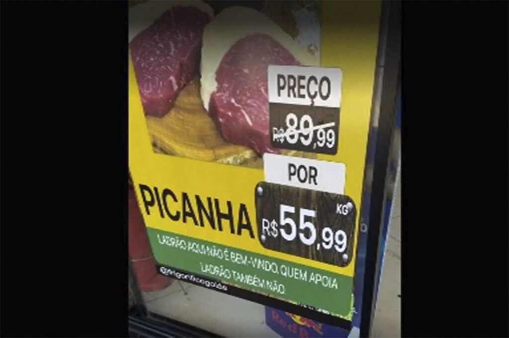 O Frigorífico Goiás voltou a gerar debate nas redes sociais. Depois de ser obrigado pela Justiça a retirar o cartaz com a frase “Petista não é bem-vindo”, o proprietário da rede, Leandro Batista, publicou um novo anúncio em sua loja nesta terça-feira (30). O cartaz agora traz a mensagem: “Ladrão aqui não é bem-vindo. Quem apoia ladrão também não”.