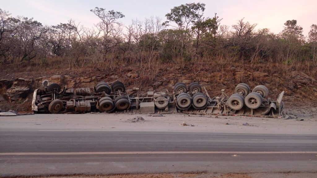 Segundo a Polícia Rodoviária Federal (PRF), o caso aconteceu por volta das 3h30, no km 383 da rodovia, em frente ao Mirante do Salto de Corumbá. A carreta, que transportava uma carga de cimento, seguia no sentido Cocalzinho–Anápolis quando saiu da pista e tombou.