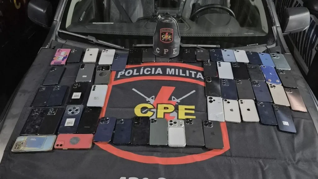De acordo com as investigações, dez celulares estavam com uma mulher abordada na saída do Centro Cultural Oscar Niemeyer, enquanto outros 54 aparelhos foram encontrados com um homem preso em outra ação policial, também em Goiânia.